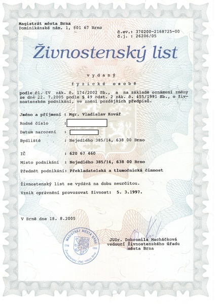 Mgr. Vladislav Kovář soudně ověřené překlady * výuka německého jazyka *